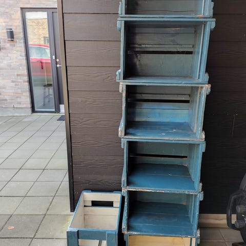 Superfin gammel ølkasse. Malet og sat hjul på. Rigtig gode til opbevaring af ting. Flot patina. Bud modtages. Har kun én kasse tilbage.