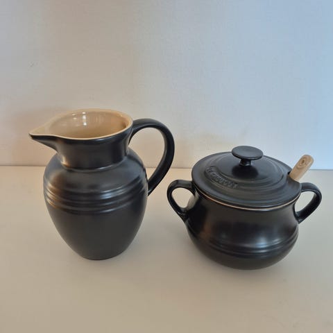 Le Creusets store dejfad i stentøj. Blank sort glasering. Fremstår næsten som nyt og er superflot og anvendeligt🖤 Kan selvfølgelig også bruges som serveringsskål.