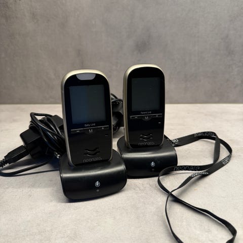Neonate Babyalarm digital med temperaturmåling. Systemet har en rækkevidde på op til 600 meter og er designet til at være interferensfrit. Enhederne har skærme til visning af temperatur og status, og systemet kan bruges til at overvåge babyens sikkerhed og velbefindende.