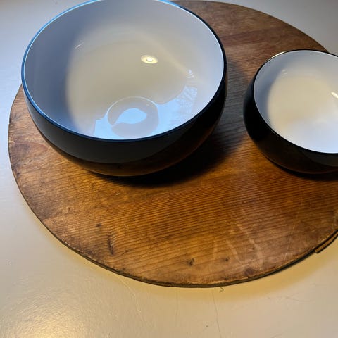 Holmegaard skål med hvid inderside og sort yderside. Skålen er lavet af keramik og har en rund form. Velegnet til