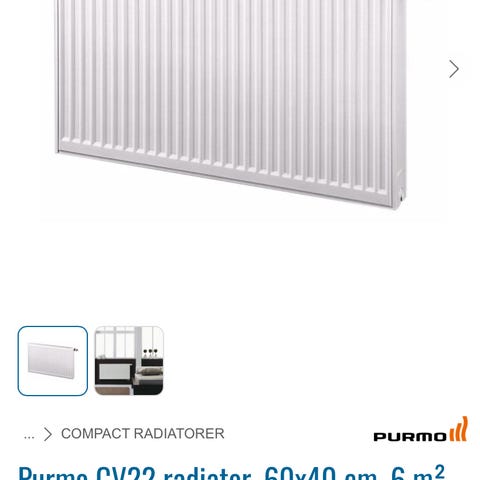 Purmo Compact Radiator CV22 med en størrelse på 60x40 cm i hvid farve. Radiatoren er designet til opvarmning og har en kompakt konstruktion.sælges uden ventil