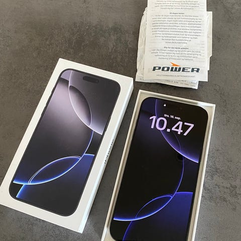Sælger en iPhone 16 Pro Max 256 GB, købt og taget i brug december 2025. Telefonen er helt som ny, uden ridser, skrammer eller brugsspor.