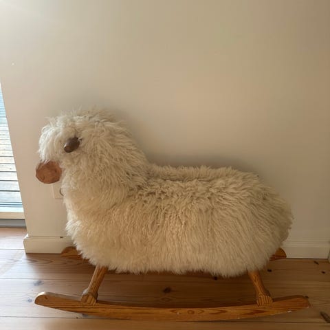 Fint ældre rokkefår som desværre ikke bliver brugt, søger ny familie. Der er stadig mange gyngetur tilbage i det fine Gyngefår ( gyngehest )