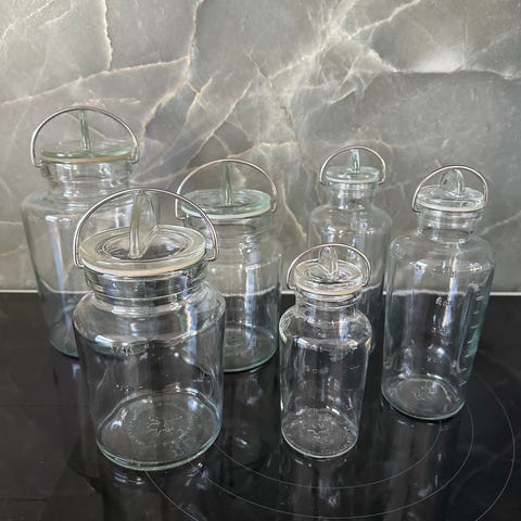 29 stk Opbevaringsglas designet af Ole Palsby i 1990’erne • Riihimäen Lasi Finland • Holmegaard • kan vaske i opvaskemaskinen.