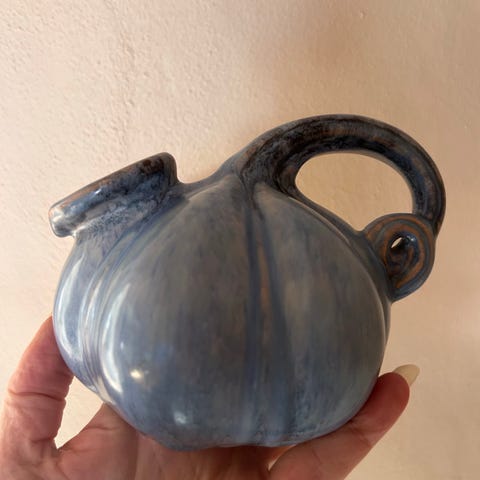 Smuk Michael Andersen græskarkande i den fineste grønne glasur, små nip på toppen (sidste foto)