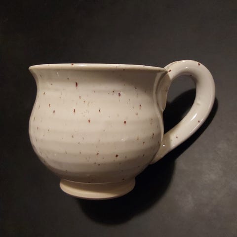Håndlavet keramikkrus fra Victoria Juul med snoet håndtag og spejlæg.