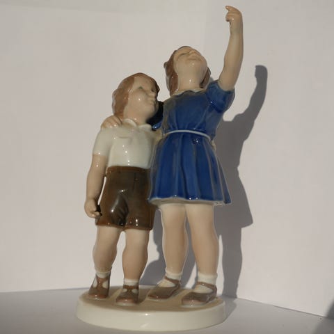 Smuk original Bing & Grøndahl porcelænsfigur forestillende en bondefamilie med barn. Klassisk dansk figur fra ca. 1930–1950.