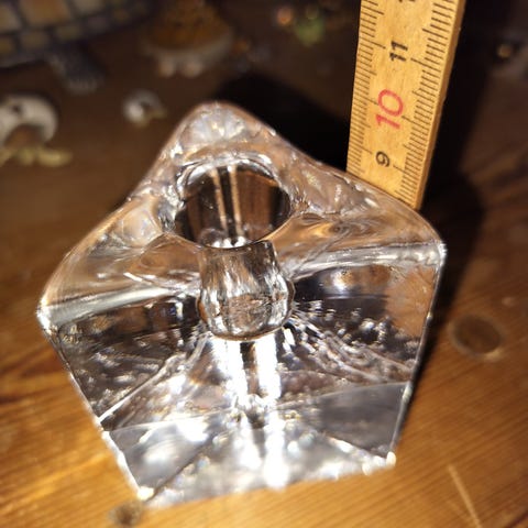 Glas, Finsk lysestage, Littala Festivo, Ekstra nedsat. Finsk glaskunst/design af Timo Sarpaneva, en klassiker fra 1967 med elegant glasoverflade med en islignende struktur, 18 cm. Perfekt stand med 4 rings