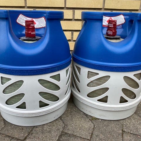 10 kg’s letvægts gasflasker fyldte og plomberet!