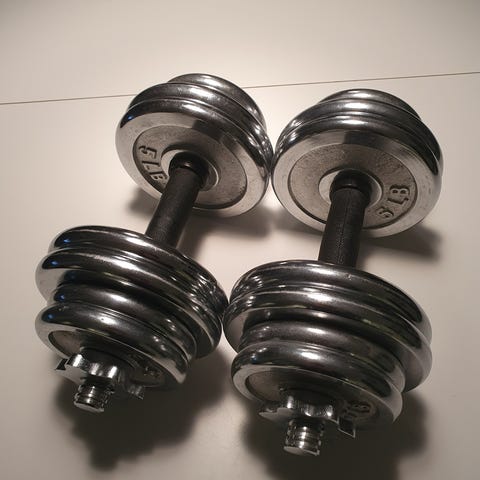 Håndvægte sæt med samlet vægt på 2x20 kg. Vægtene er sorte og lavet af plastmateriale. Sættet indeholder justerbare håndvægte til styrketræning.