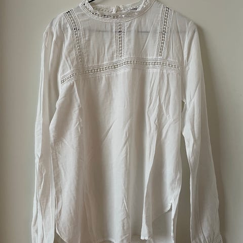 Co'couture bluse i størrelse S med multifarvet blomsterprint. Blusen har lange ærmernes har puff-ærmer-effekt og rund hals.