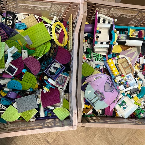 Blandet poser med både mindre sæt og overskydende Lego friends klodser sælges i små poser. Det hele samlet for 120 kr