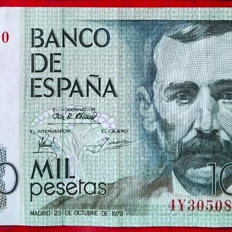 Vesteuropa Sedler SPANIEN SPAIN 100 PESETAS 1965 Gustavo Adolfo Bécque & Terrón