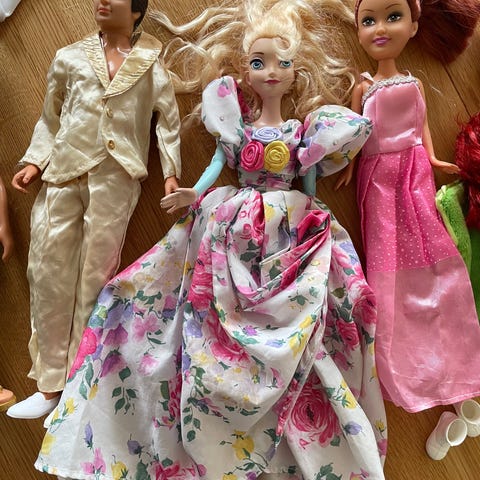Barbiedukker og en Ken dukke samt div. tilbehør, bl.a. mikrofon og barnevogn sælges.