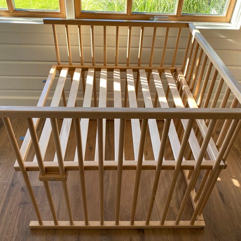 Hjemmebygget Bedside crib i træ