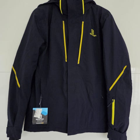 Salomon vinterjakke/skaljakke med tilhørende bukser til mænd i størrelse L, med vandafvisende og svedtransporteret membran.
