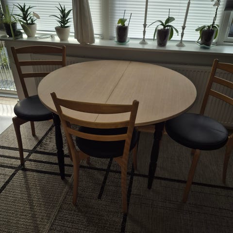 Bord & 5 stole - meget velholdt, bord diam 100 cm