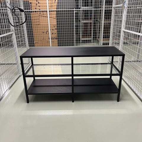 Fint og let klassisk IKEA tv-bord eller lille reol. Midterhylde i glas.