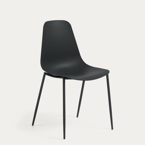 Designet er enkelt og moderne med formstøbt sort sæde og slanke sorte metalben – passer godt ind i både nordisk og minimalistisk indretning.