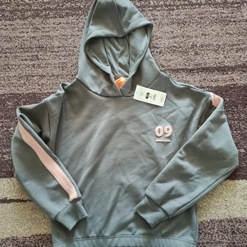 Bluse, grå med et pinkfarvet tryk foran, Mrk. Denim Day, str. 158, kr. 25,00.
