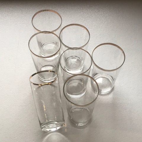 6 fine gamle farvede drikkeglas / sodavandsglas