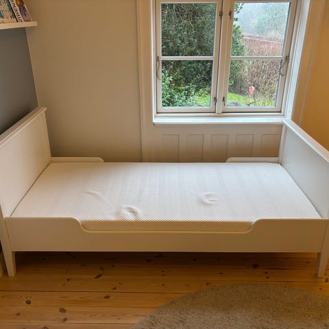Sengen er super praktisk og har en udtræksskuffe under, som kan bruges enten til en overnattende gæst eller som ekstra opbevaring til fx sengetøj.