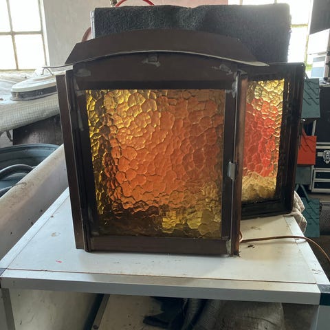 Smuk gammel lampe fra togstation i Belgien! Monteret fatning og ledning.