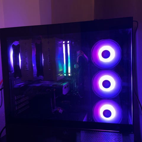 Samlet i pænt Nzxt H500 kabinet med usb-c i top og 2 rgb strips.