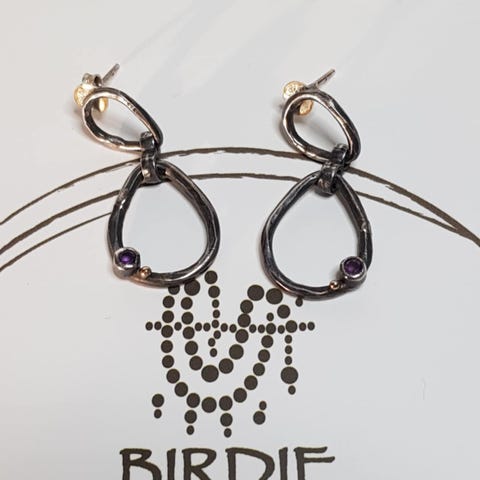 Håndlavet ørestikker i sølv, guld og med to brillanter (0,06ct) i champagnefarvet. Ikke brugt meget.