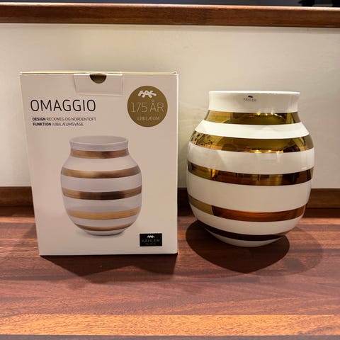 Kähler Omaggio vase med horisontale kobberstriber. Vasen har en rund form og er velegnet til dekoration med blomster. Materialet er keramik.