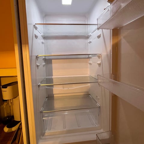 Gram Køle-fryseskab i hvid farve. Køle-fryseskabet har separate rum til køling og frysning, med hylder og skuffer til opbevaring af madvarer.