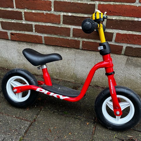 Puky løbecykel i grøn og gul farve. Cyklen har justerbart sæde og styr. Udv. dækdiameter 21cm, sadelhøjden kan justeres fra ca 30-40cm. Den er designet til at hjælpe børn med at lære balance og koordination før de går videre til en almindelig cykel. Den er virkelig robust, og kan køre også på varieret terræn. Vores dreng har haft virkelig stor glæde og sjov på denne, og har nu selv gjort den ren, så en ny kan få samme glæde.