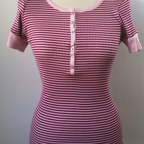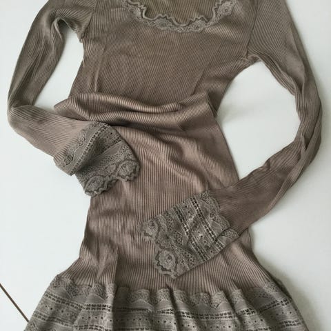 En langærmet top fra Rosemunde med høj hals og blonder . Brugt kun en enkel gang. 70% silke og 30% bomuld.