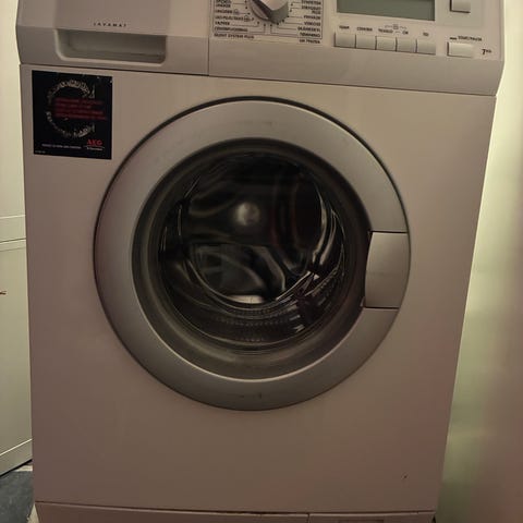 AEG Frontbetjent vaskemaskine med frontbetjent design. Maskinen har en stor tromle til vask af tøj og er udstyret med et brugervenligt kontrolpanel. Den er fremstillet med materialer, der sikrer holdbarhed og effektiv vask.