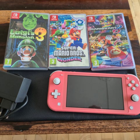 Nintendo Switch Lite konsol coral og Mario Kart 8 deluxe Weekend tilbud 999