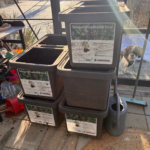 3 styk Claus Dalby Selvvandingskasser i sort med tilhørende hjul. H: 40 cm B: 40 cm.