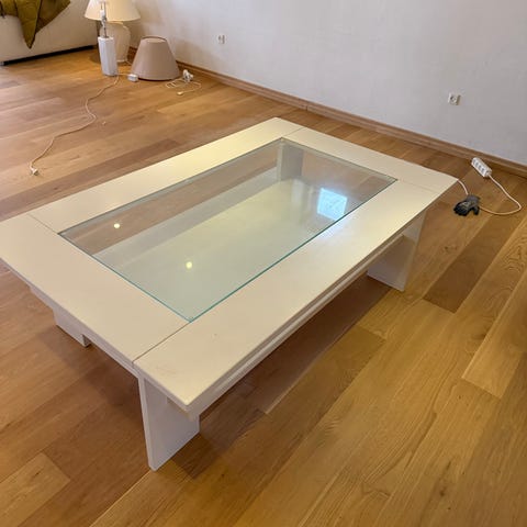 Sofabord med skuffer og glasplade