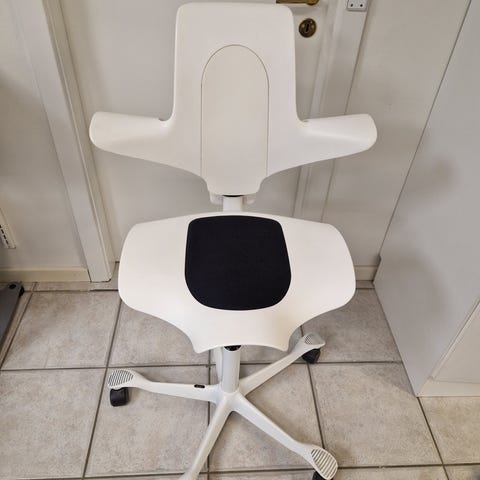 Velholdt Capisco Håg 8106 kontor-stol i sort. Modellen er med høj/lang gaspatron.