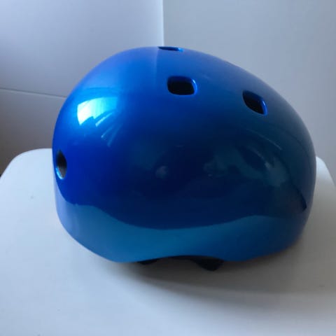 Helt ny cykelhjelm med lygte bagpå. Med mærker. Mørkeblå