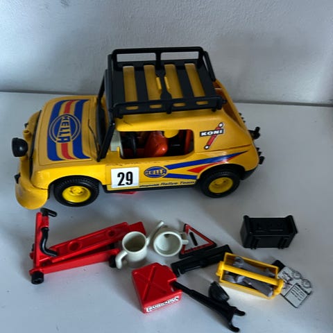 Vintage Playmobil Racerbil med figurer og tilbehør