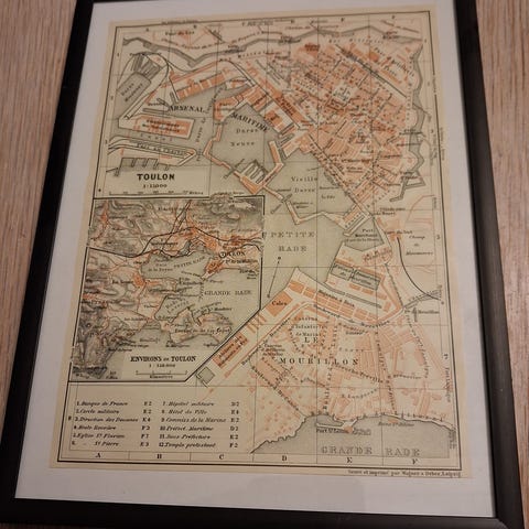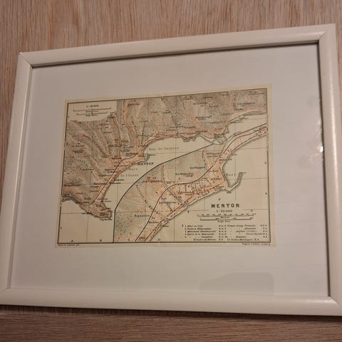 Sydfrankrig. Monteret I hvid træramme. Måler ca 20 x 26 cm