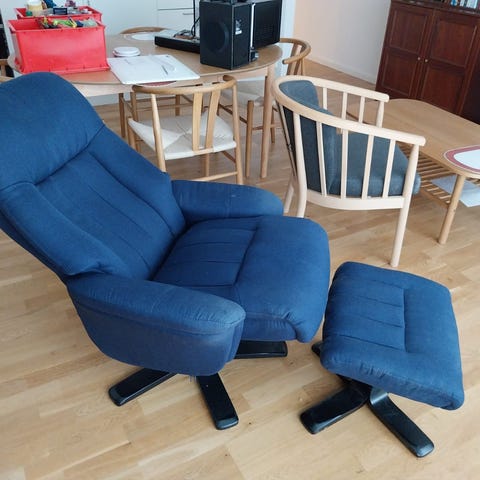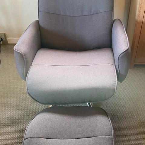 Mørkegrå lænestol med skammel