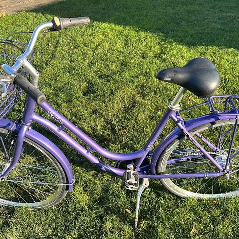 28" køreklar Sco shoppingcykel i med lav indstigning. Cyklen har 7 gear, fod og håndbremse, kurv foran, skæme, støttefod, lygter og lås med nøgler.
