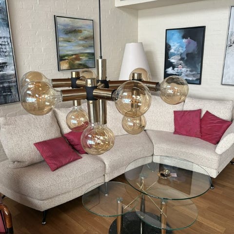 Molekyle lampe i guld/messing med glas kupler