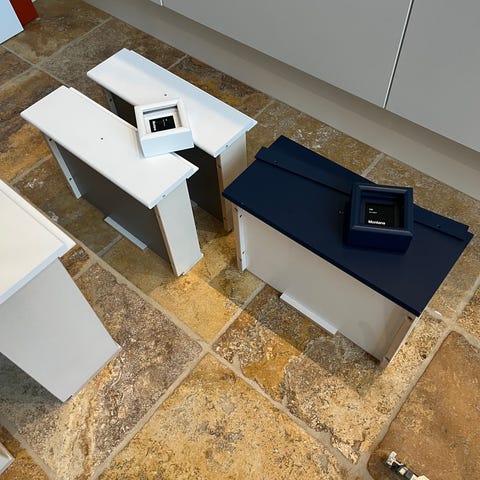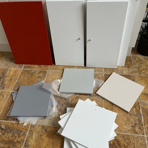 Låger hvoraf den ene er ny og den anden skal repareres… uden greb og hængsler