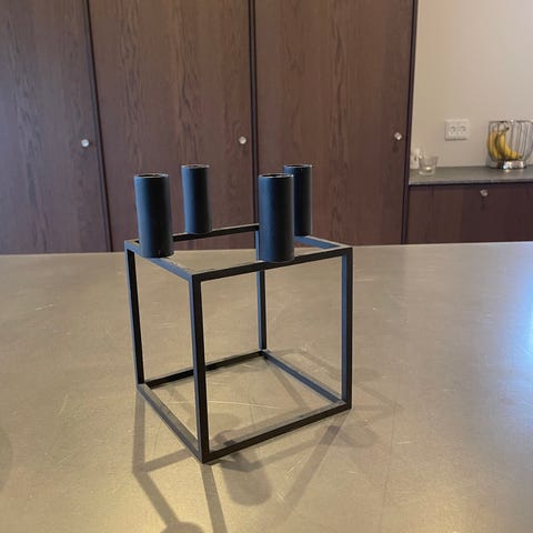 By Lassen Kubus lysestage i sort metal med plads til 8 stearinlys. Lysestagen har et moderne og geometrisk design i sort metal, der kan bruges som dekoration til forskellige rum.