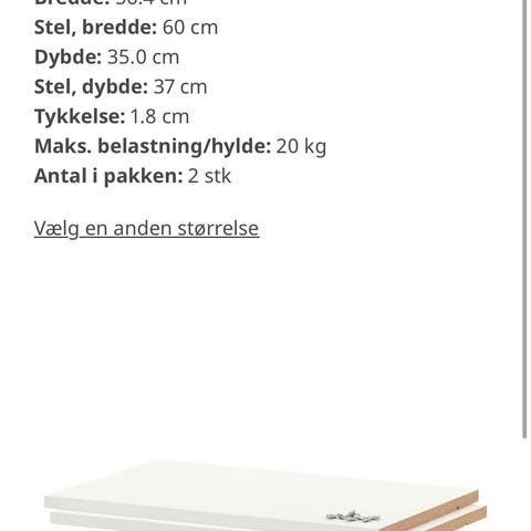 Tre pakker med to Utrusta-hylder i hver sælges. Passer til Ikea-skabe, der er 80 dybe og 40 i bredde.
