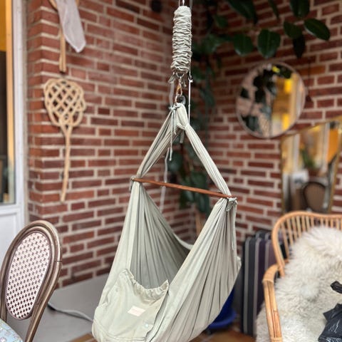 Nem at bruge i en slyngevugge (vi har brugt den i en Moonboon slyngevugge til vores søn var cirka 6 måneder) eller i barnevognen (passede til