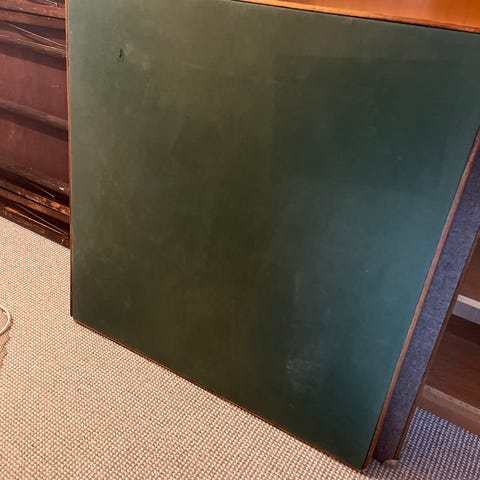 Brugt bordplade med grøn overflade. Pladen har en firkantet form og kan anvendes som bord- eller arbejdsplade. Materiale og specifikke mål er ikke oplyst.