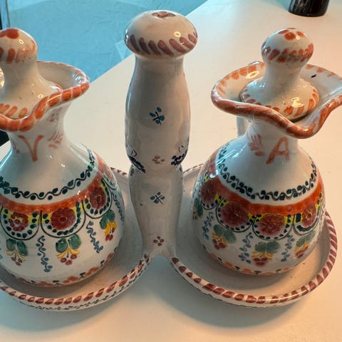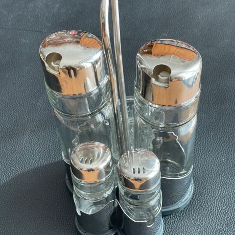 Rustfrit stål, Olie / Eddike sæt, Fint lille olie / eddike sæt er kommet i overskud.